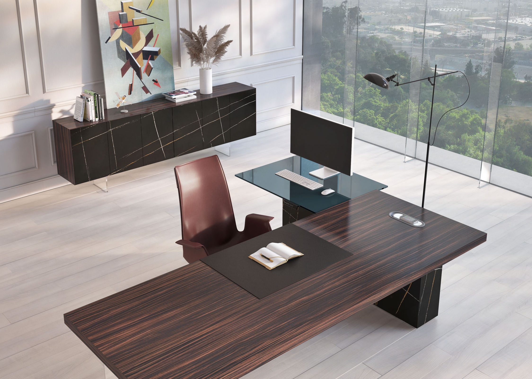 - Configuration: Top panel and side panels in wood grain finish; door panels in solid-color paint. Legs: 15mm thick ultra-clear acrylic.