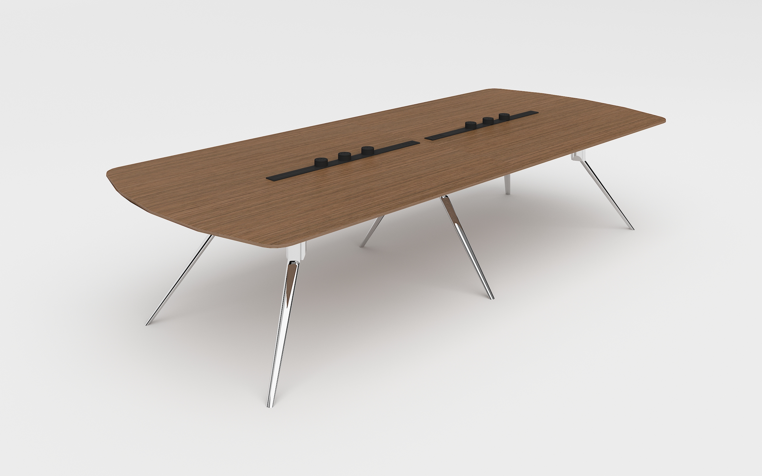 - Configuration: The tabletop is equipped with power track, a flexible cable management snake tube, and electroplated cast aluminum legs.The tabletop is 26mm thick and finished with wood veneer and paint.