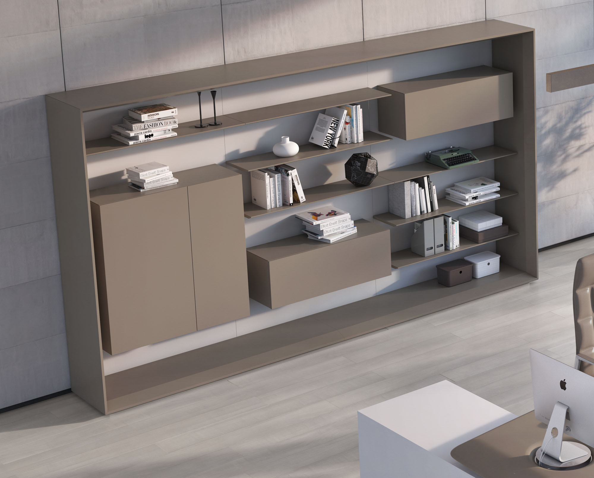 Cabinet body, shelves, and door panels in TA122 Cologne light gray, back panel and hanging cabinet body in TA14 white. - Size: